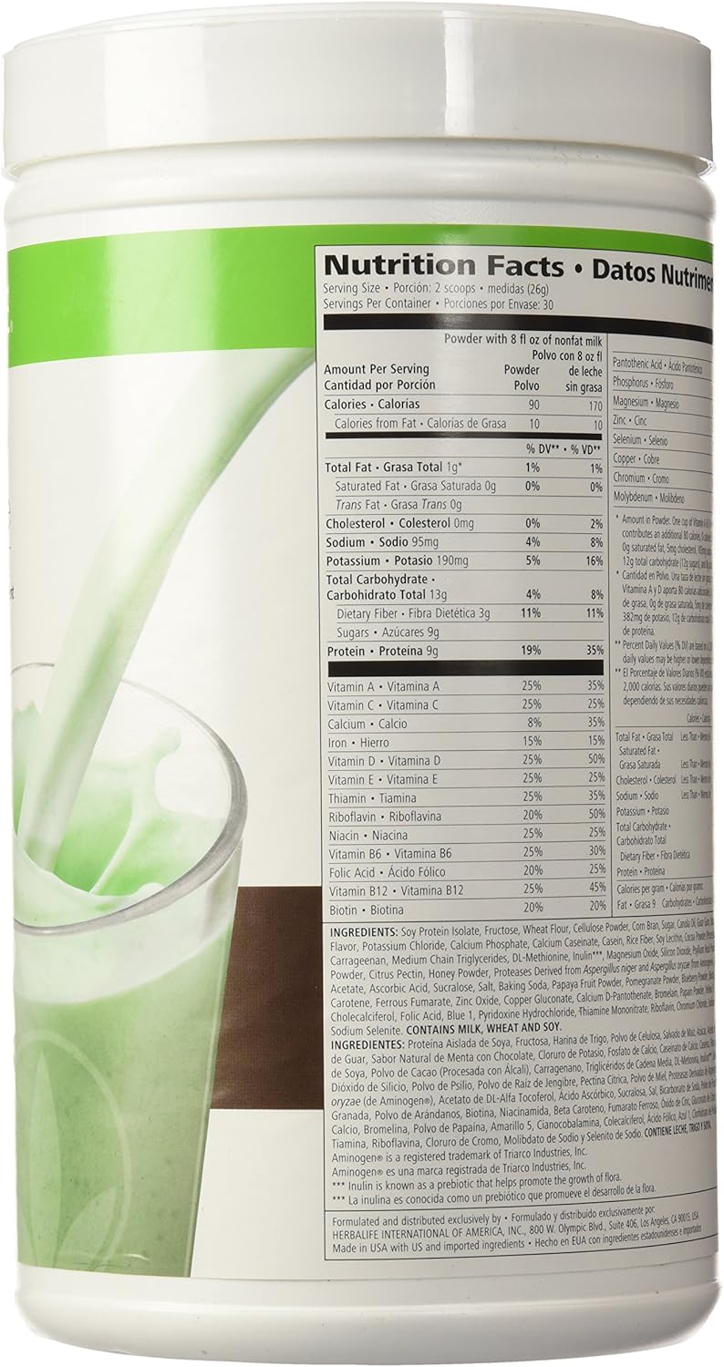 Company Facts | Herbalife Nutrition How many calories are in an Herbalife Nutrition shake? A Formula 1 meal replacement shake is a nutrient-dense healthy meal with 170 calories, 21 vitamins and minerals, 17 g of protein, and 3 g of fiber when made with 8 fluid ounces of nonfat milk. Can I mix Herbalife Nutrition shakes with water? Formula 1 Nutritional Shake Mix French Vanilla 560g - Herbalife (28g is equal to 3 level 15mL Herbalife Nutrition measuring spoons). Applies to Mint Chocolate Flavour Mix 28g (2 scoops) with 320mL of skim or soy milk**. Contains milk, oat and soybean ingredients. Always read the label - use only as directed. (Vanilla, Chocolate, Berry, Cookies 'n Cream) Contains milk, wheat, oat and soybean ingredients. Herbalife Products, Calories and Nutritional Information Find calorie and nutrition information for Herbalife foods, including popular items and new products