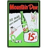 Wholesale Metal Tin Sign - Mountain Dew Bottle - Signs 4 Fun Mountain Dew Green Bottle Tin Metal Sign - 12.5 inches x 17.4 inches - Made in USA - Wholesale - Developed in the early 1940s as a mixer for alcoholic beveages Wholesale Signs & Novelties TOLL-FREE 1.800.735.7757