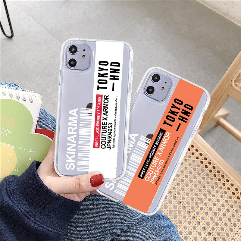 In Tiket Perjalanan Label untuk iPhone 11 Pro XS Max 6 7 8 Plus X XR Kasus Penerbangan tiket Huruf Bening Silikon Lembut Tritone