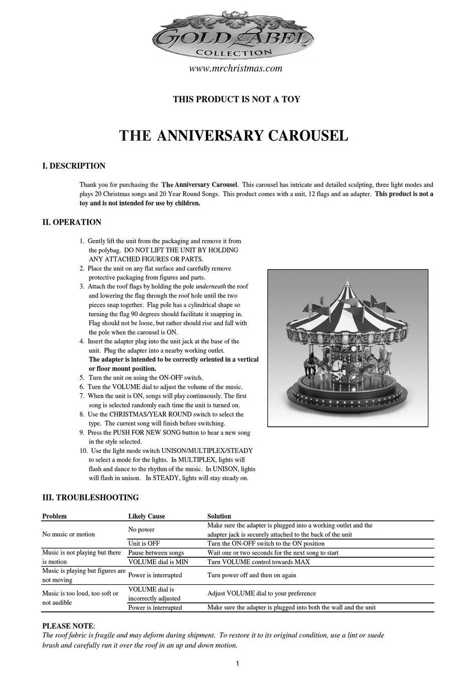 Mr. Christmas Gold Label Collection The Carousel W/Box Untested ... Mr. Christmas Gold Label Collection The Carousel W/Box Untested Title: Mr. Christmas Gold Label Collection The Carousel W/Box UntestedItem AttributesCONDITION:UsedDusty, Dirty, Spots on Mirror, No Power Cord Included, Appears Intact, All Animals, Seats & Riders in Place & Not LooseMr. Christmas Gold Label Collection The Carousel W/Box UntestedPlease note dimensions are approximate.
