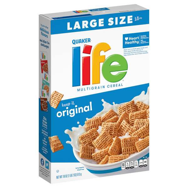Quaker Life Original Multigrain Cereal - Shop Cereal ... - H-E-B Quaker Life Original Multigrain Cereal. 18 oz. $3.77 ($0.21/oz) Icon details. Product description. You don't have to be a kid to love the sweet and crunchy goodness of Quaker Life Cereal, and you don't have to be a grown-up to enjoy the whole grain Quaker Oats and wheat baked inside each square. Wholesome with just the right touch of sweetness ...