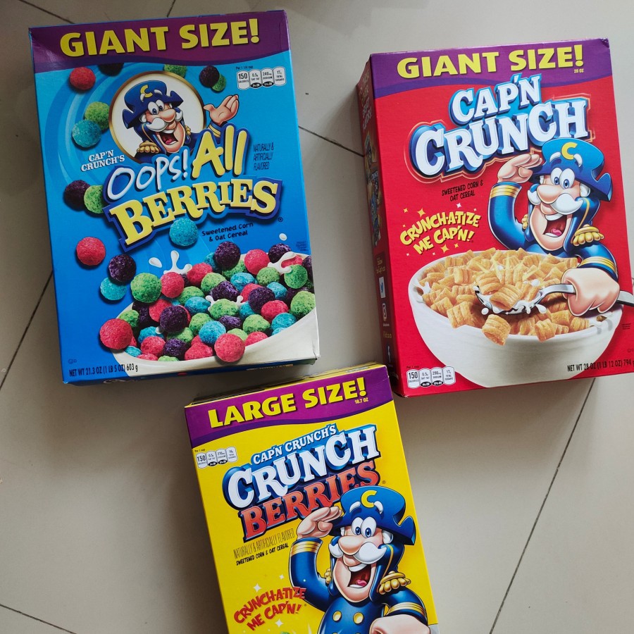 How many calories in Cap'n Crunch - calorieking.com All Berries. Peanut Butter Crunch. Halloween Crunch. Christmas Crunch. Freedom Crunch. Sweetened Corn & Oat Cereal, Peanut Butter Crunch. Peanut Butter Crunch. Caramel Popcorn Crunch. Cinnamon Roll Crunch.