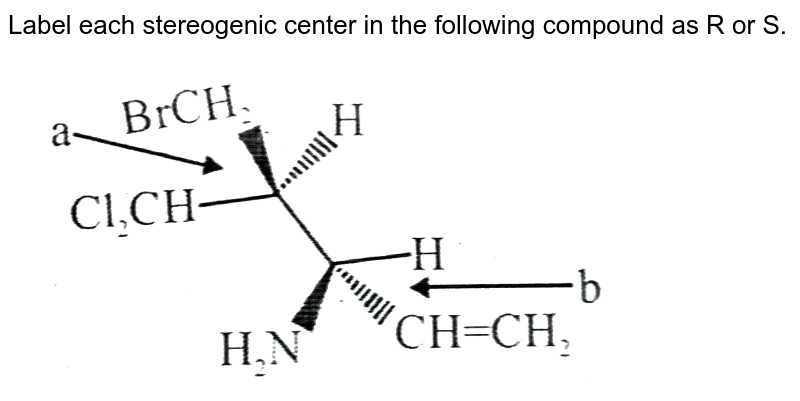 Label each stereogenic center as R or S. | Homework.Study.com Label each stereogenic center as R or S. Question: Label each stereogenic center as R or S. Stereochemistry: The stereochemistry is the branch of chemistry in which study of the spatial arrangement of groups in the molecule. It is also studied for chiral compounds. Answer and Explanation: 1.