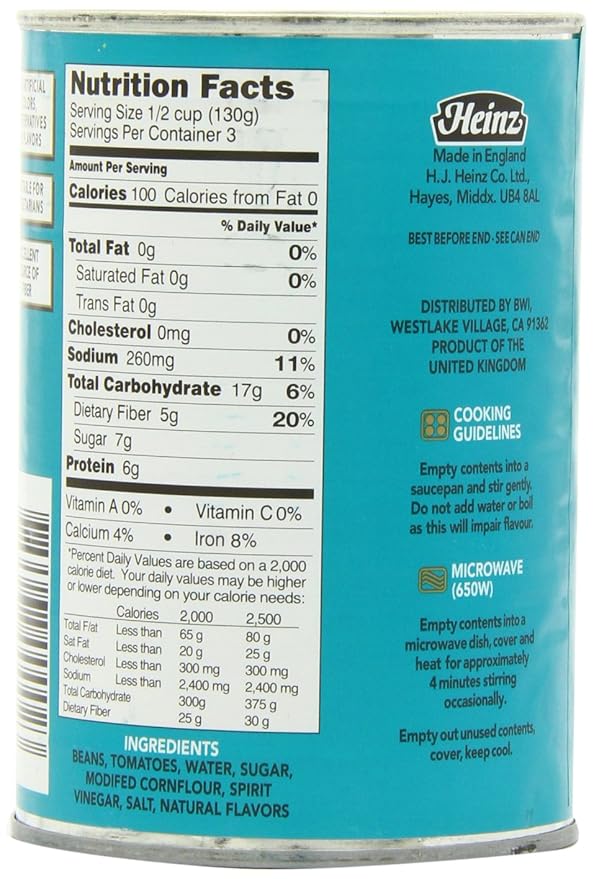 FoodData Central The .gov means it’s official. Federal government websites always use a .gov or .mil domain. Before sharing sensitive information online, make sure you’re on a .gov or .mil site by inspecting your browser’s address (or “location”) bar. Heinz Beans With Tomato Sauces 13.7oz : Target Read reviews and buy Heinz Beans with Tomato Sauces 13.7oz at Target. Choose from Same Day Delivery, Drive Up or Order Pickup. ... Country of Origin: Varies, Please See Label. TCIN: 17294009. UPC: 789968000023. Item Number (DPCI): 212 ... I am always so happy to find my “British beans” They are not as sweet as most of the American baked ...