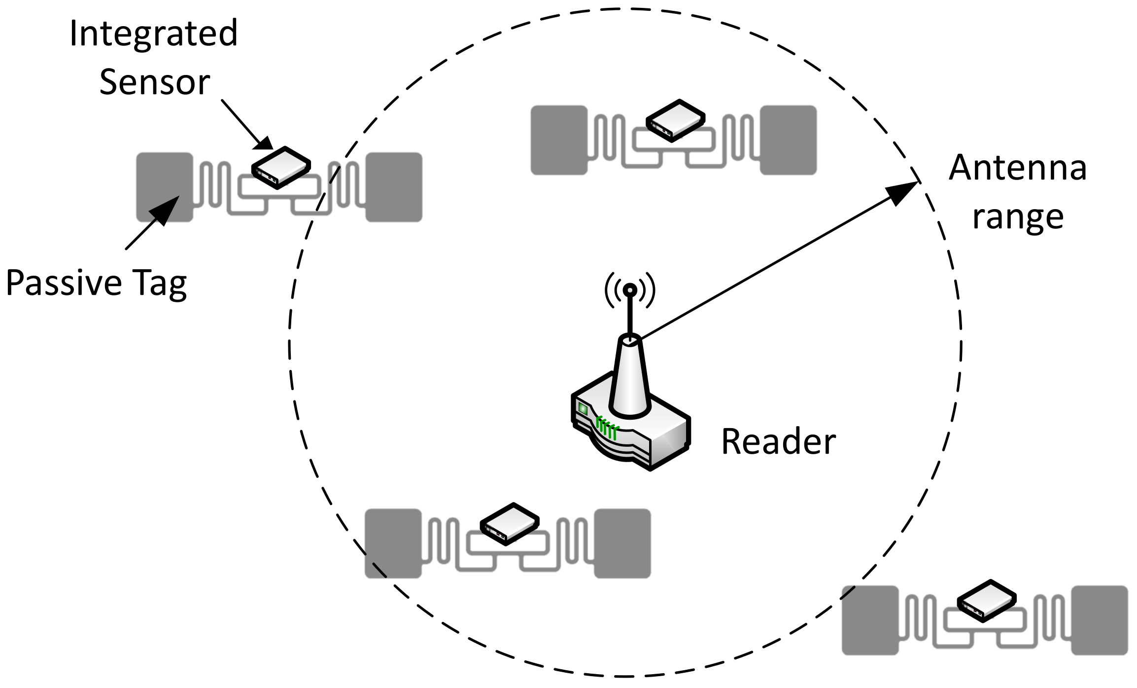 RFID methods utilize radio waves to accomplish this. At a simple level, RFID systems consist of three components: an RFID tag or smart label, an RFID reader, and an antenna. RFID tags contain an integrated circuit and an antenna, which are used to transmit data to the RFID reader (also called an interrogator).