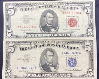 A Red Seal 5 Dollar 1963 Certificate& A Blue Seal 5 Dollar - Etsy A red seal 5 dollar 1963 Certificate,& A blue seal 5 dollar 1934 Certificate 2 bill @ 1 price. $31.00 Only 1 available Add to cart Rare find — this item is hard to come by. Star Seller. This seller consistently earned 5-star reviews, shipped on time, and replied quickly to any messages they received. 280 shop reviews Sort by: Suggested