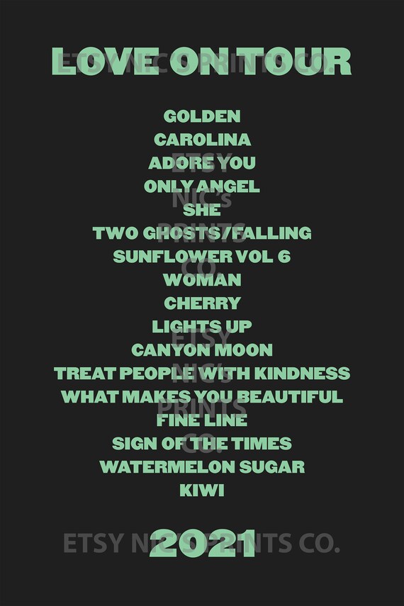 › chart-news › harry-stylesHarry Styles' Love On Tour setlist in full - Official Charts Sep 20, 2022 · Harry Styles setlist 2022 and 2023: Love On Tour songs for Madison Square Garden, New York, USA on September 21: ... Exclusive: Louis Tomlinson praises 'brilliant' 5SOS and 'amazing' new talent STONE.