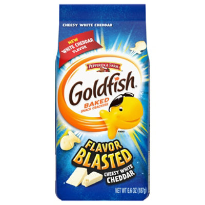 Goldfish® Limited Edition OLD BAY® Seasoned Crackers Ingredients. Made with smiles and enriched wheat flour (flour, niacin, reduced iron, thiamine mononitrate, riboflavin, folic acid), vegetable oils (canola, sunflower and/or soybean), Old Bay Seasoning (salt, spices, celery, corn maltodextrin, paprika (color), Modified corn starch, sodium diacetate, yeast extract, garlic powder, monosodium glutamate, citric acid, vinegar solids, extractives of paprika, disodium inosinate and guanylate, natural flavors), salt, contains 2% or less of: Nonfat ... Xtra Cheddar Crackers - Pepperidge Farm Everything you love about Goldfish® crackers with an extra sprinkle of oomph! Goldfish® Flavor Blasted®. Goldfish® Flavor Blasted® Xtra Cheddar. Goldfish® Flavor Blasted® Sour Cream & Onion. Goldfish® Flavor Blasted® Xtra Cheesy Pizza. Goldfish® Flavor Blasted® Cheddar & Sour Cream. Goldfish® Flavor Blasted® Cheddar Jack'd.