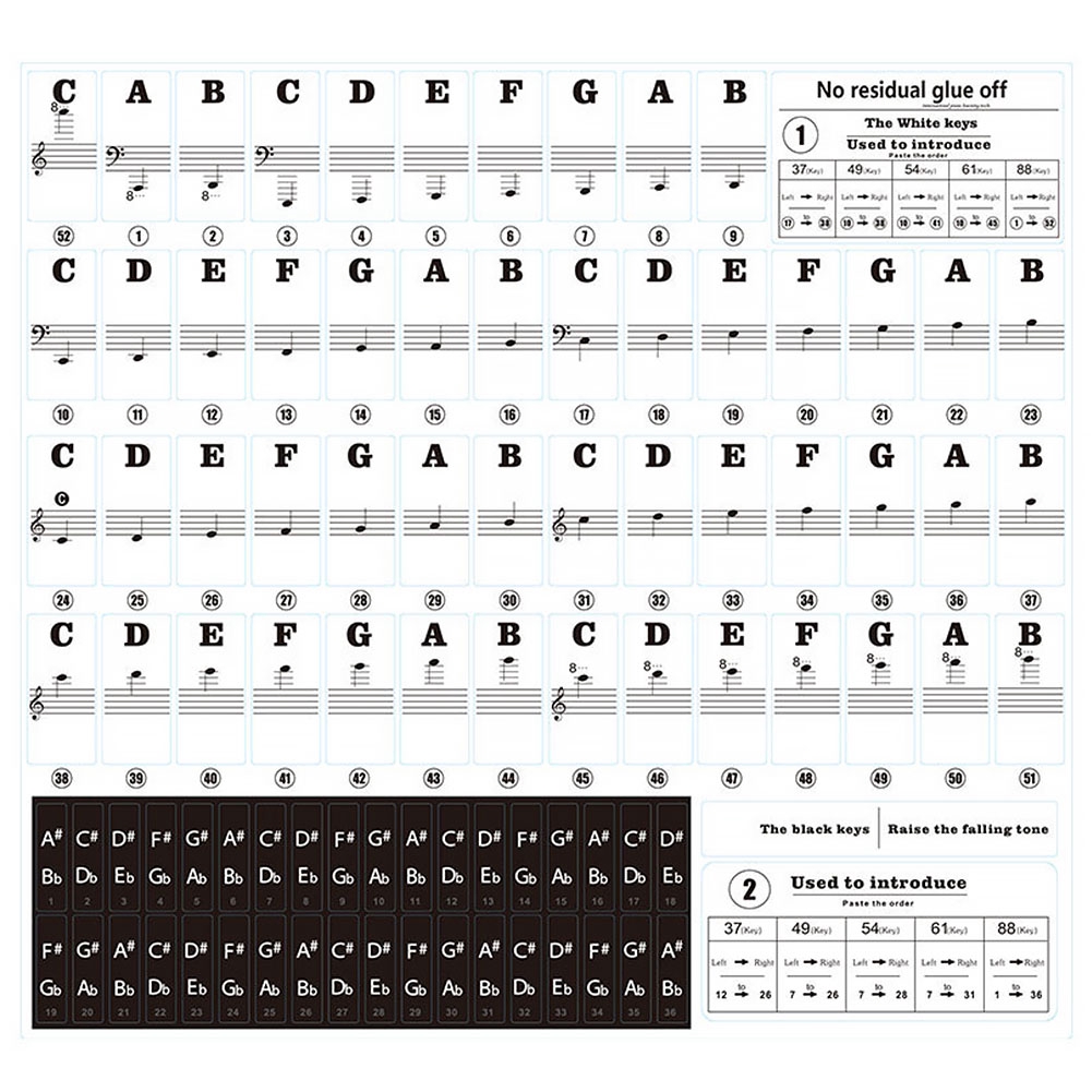 For Music Keyboard Piano Stickers 88/61/54/32 Key Removable Keyboard Stickers | eBay