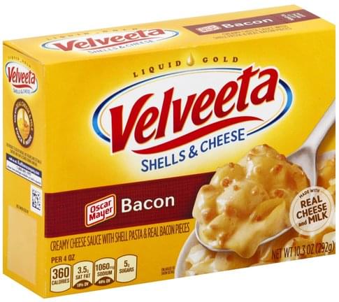 Kraft Velveeta Original Shells and Cheese Family Size - H-E-B Nutrition Facts · Amount Per Serving. Calories. 370 · % Daily Value · Cholesterol. 15mg; 5% · Sodium. 860mg; 38% · Potassium. 210mg; 4% · Calcium. 150mg; 10% · Iron. velveeta cup mac n cheese Calories, Carbs & Nutrition Facts - MyFitnessPal 1780 Cal. 220/2000Cal left. Fitness Goals: Heart Healthy. Fat 59 g. 8/67g left. Sodium 1710 mg. 590/2300mg left. Cholesterol 290 mg.