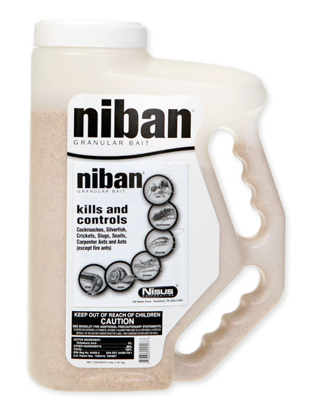 Niban-FG Specimen Label 6-12 Niban-FG gives PMPs the power of Niban in a ready-to-use fine granular form ideal for indoor use. Niban-FG is perfect for perimeter, attic and crawl space treatments as well as difficult-to-reach areas like cracks and crevices, under cabinets and appliances, in and around waste containers and into openings DoMyOwn.com DoMyOwn.com Niban Granular Bait - 4 lb. Shaker - DoMyOwn.com NIBAN Granular Insect Bait is a moisture-resistant bait that can be used indoors and outdoors to control ants, silverfish, roaches, crickets and more. Niban's weatherized granules don't degrade from heat or sunlight and will last through four inches of rain.